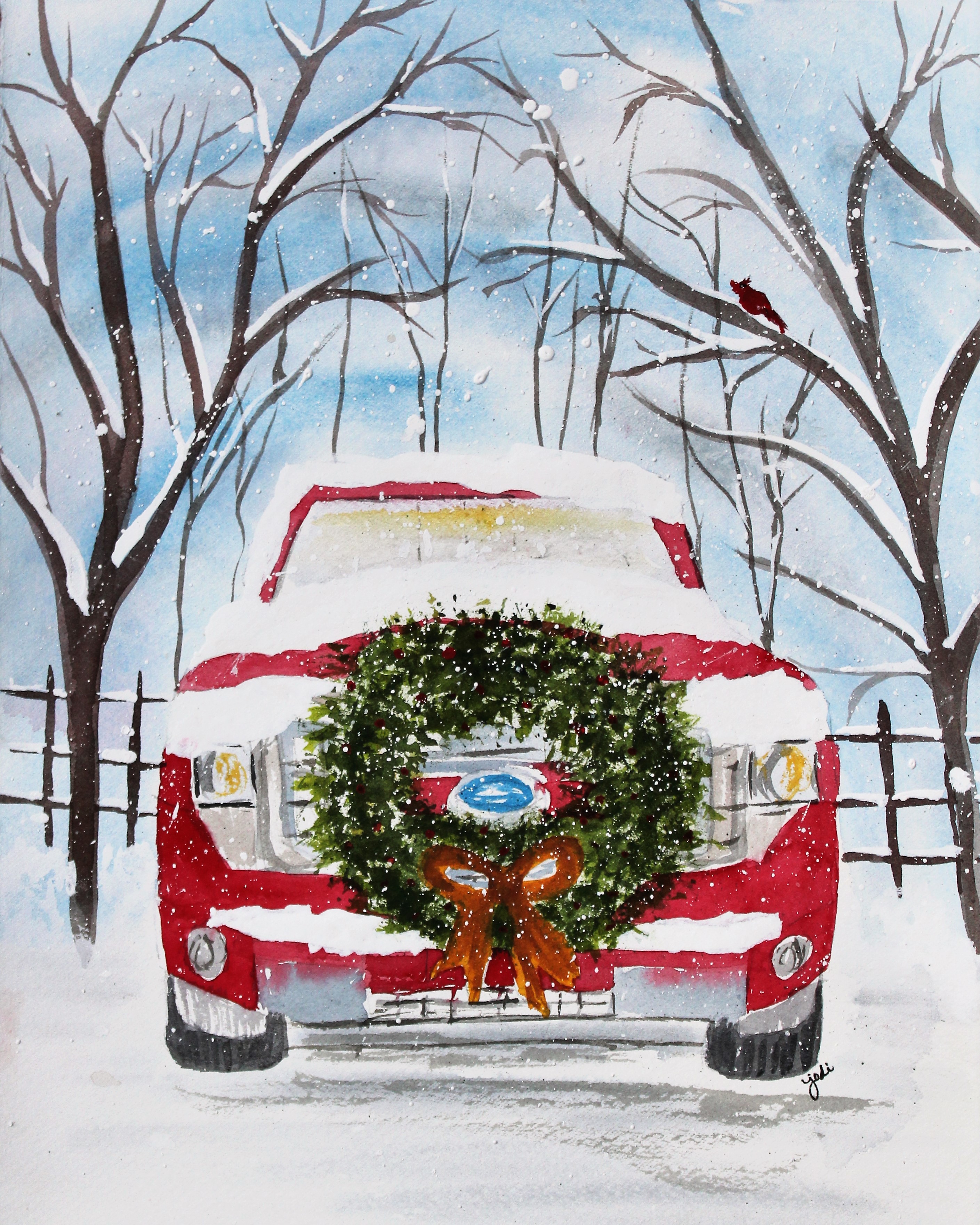 When I painted my previous classic red truck carrying a Christmas tree, my red truck man informed me since it was a Chevy, I needed to paint a Ford too.